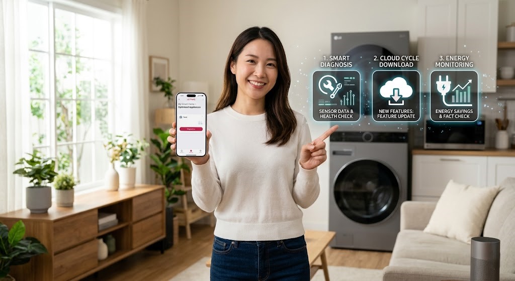 ThinQ 앱 내의 '루틴' 기능을 활용해 보세요. "세탁 완료 시 TV 화면에 알림 팝업 띄우기"나 "에어컨 가동 시 공기청정기 동시 운전" 같은 시나리오는 별도의 코딩 없이도 클릭 몇 번으로 완성되는 진정한 스마트홈의 시작입니다.